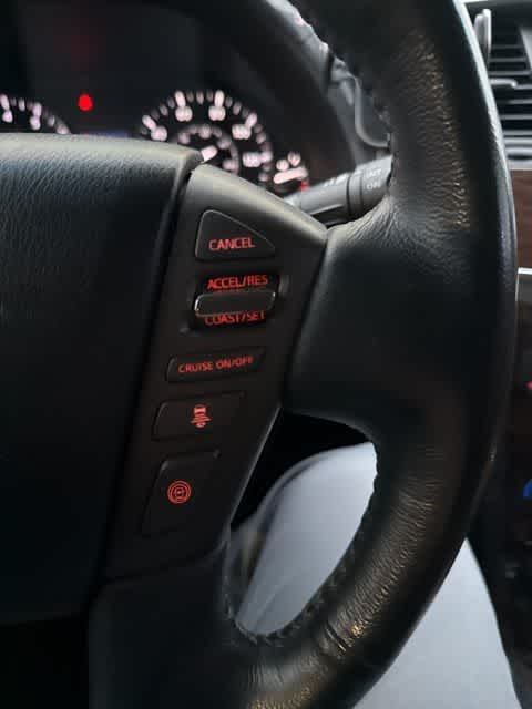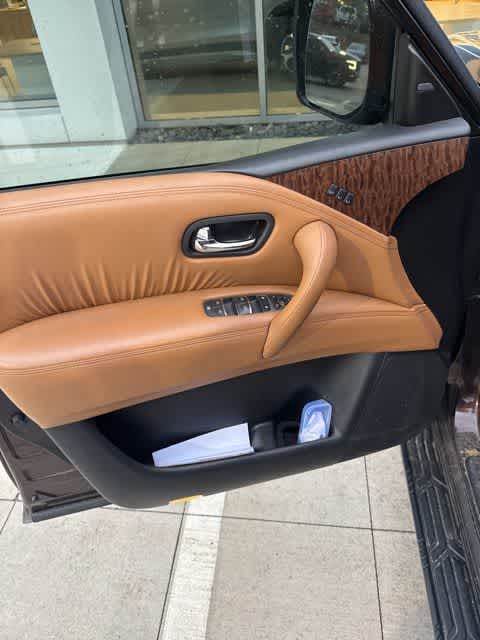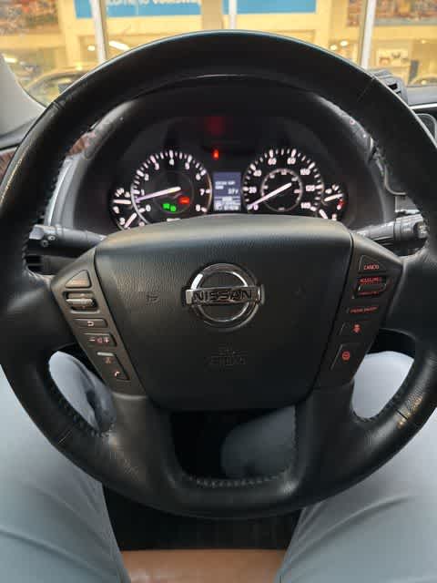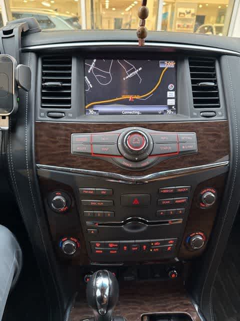 Leather Seats, Third Row Seat, Navigation, DVD, Sunroof, 4x4, Power Liftgate, Rear Air, Heated Driver Seat, Heated Rear Seat, Cooled Driver Seat, Back-Up Camera, Running Boards, Premium Sound System, Satellite Radio Nissan Platinum with Mocha Almond exterior and Tan interior features a 8 Cylinder Engine with 390 HP at 5800 RPM*.